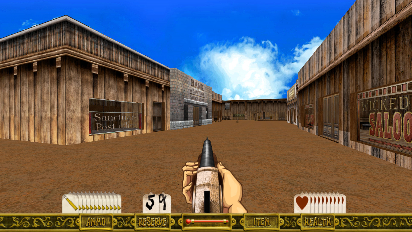 Разработчики использовали антураж вестернов на полную катушку: на месте и перестрелки среди салунов и мотелей, и обязательный этап с поездом, а уровни сложности обозначены не иначе как «хороший», «плохой» и «злой».