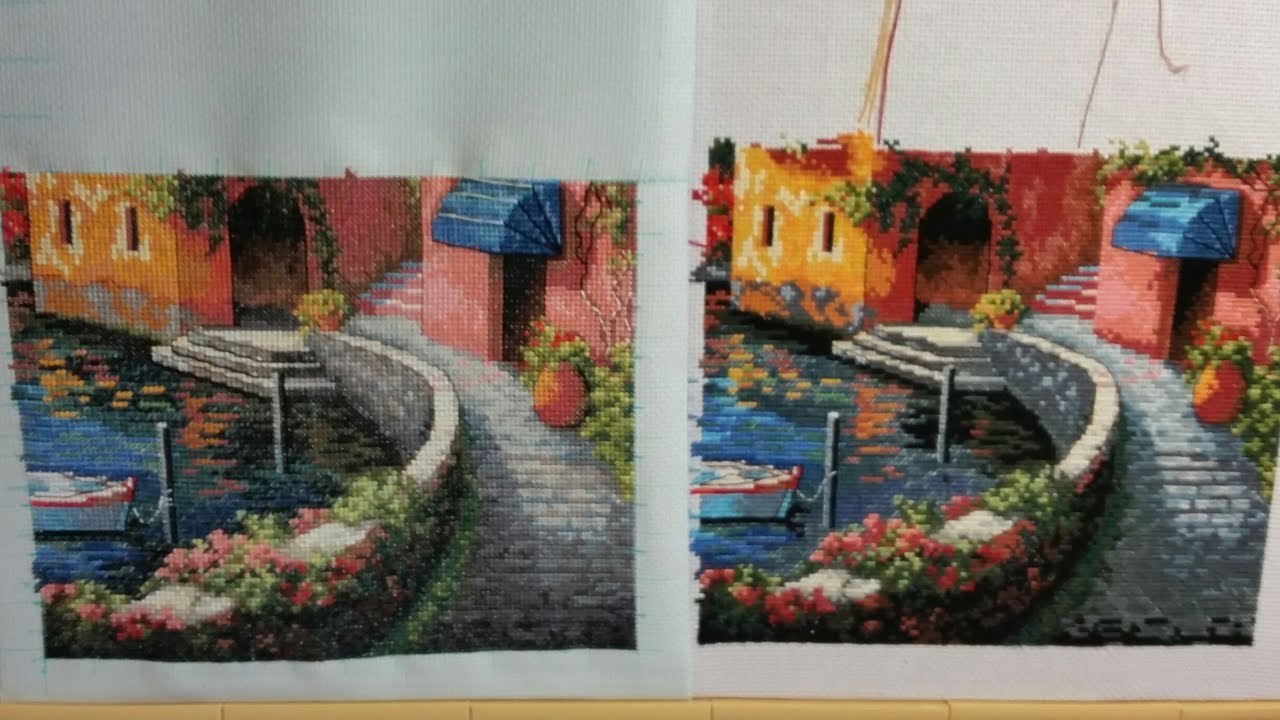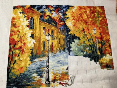 Я конечно не профессионал и не вышиваю, но для меня ваша работа прекрасна! Столько терпения и труда вложено! Может профессионалы и увидят какие то недостатки, но я снимаю шляпу перед вами. Картина смотрится просто шикарно, немного похожа на импрессионистов!