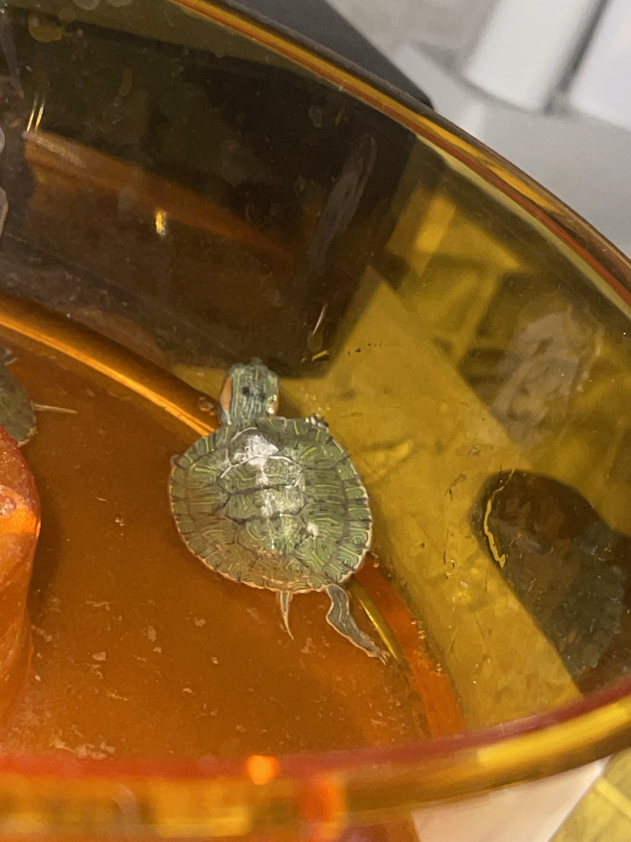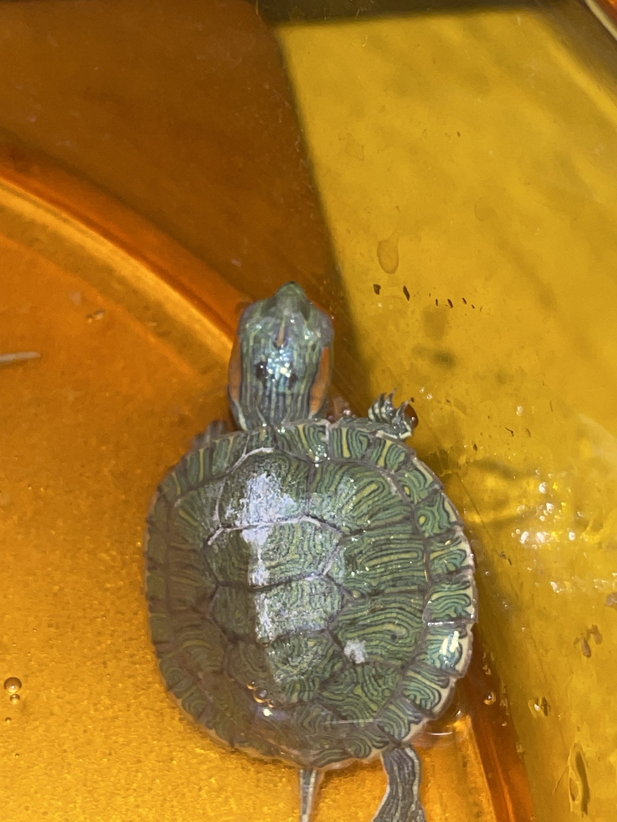 У красноухой черепахи черные точки на шее, она часто сидит под лампой, но еще у нее вторую неделю какие то сопли чтоли, постоянно дышит воздухом, открывает рот и всегда с закрытыми глазами, ничего не ест. Воду меняю, аквариум мою. Помогите, может быть кто знает?( А то у нас а городе нет ветеринаров для черепах(( (p.s. на фото вода грязная потому что они почему то корм они не едят)