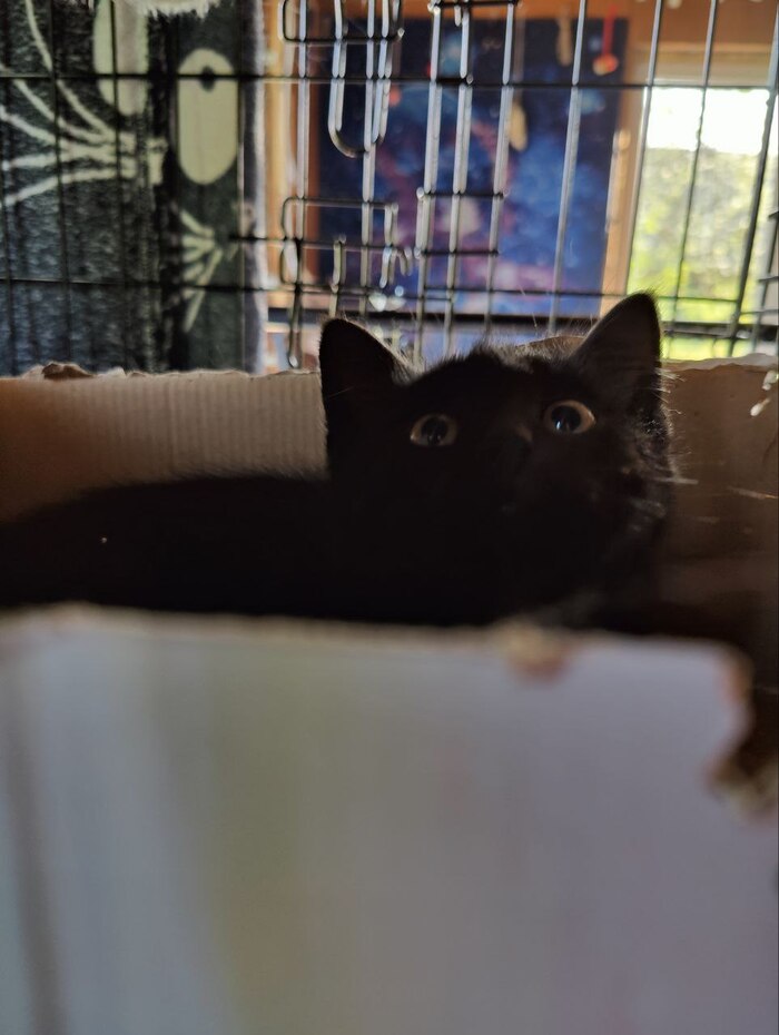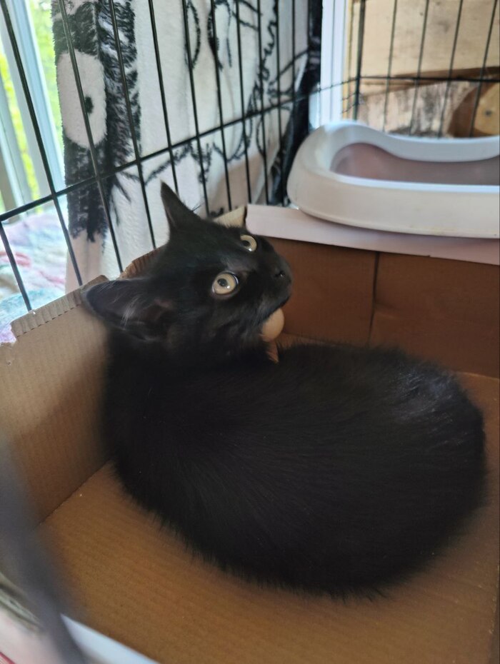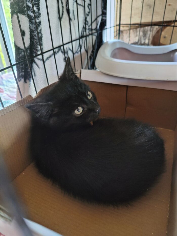 Всем привет. Пока я была на слете, мне привезли котенка (19 мая). По словам людей, которые обратились за помощь, им на участок подкинули котят. Планировалось, что котята поедут в клининку, но так как у нас внезапный завал (У нас новые очень истощенные котята и кошки от сошедшей с ума женщины (квартира + гараж), которые бросаются даже на варенье), котенка забрала я. Дала ему коробочку. Через пару дней будет первая прививка. Котенок очень ласковый. Как только его берешь на ручки, сразу же начинает мурчать и делать молочный шаг. Очень радует тот факт, что вот уже пять лет я занималась стерилизацией дачных кошек и могу себе позволить спасать котят уже из других мест.