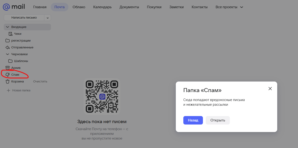 В мэил.ру редко захожу, если надо найти письмо в спаме. И тут юзабилити-дизайнеры меня ввели в ступор... Чтобы открыть папку "Спам" нужно подтверждение, что ты хочешь именно в спам. А кнопочка "Назад" как бы подталкивает туда не ходить.