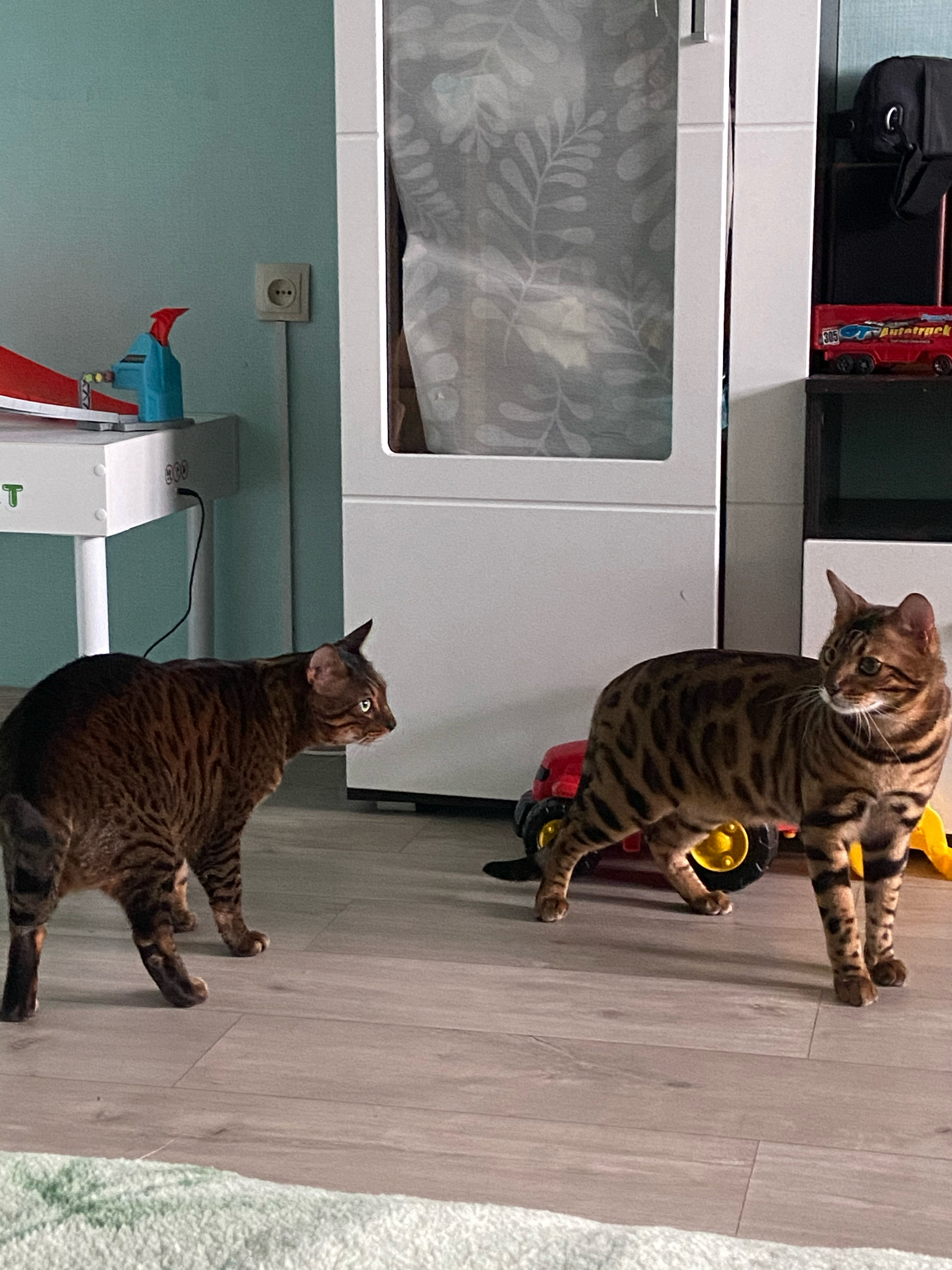 Да, бенгал - кот, ему 4.5 года. У нас наоборот, мелкая жрёт как не в себя. Сейчас отожралась до 4.6 кило, но вет рекомендует её держать в районе 4.2-4.3 кг, поэтому будем корм менять. Пока непонятно, как вообще им корм разделять, т.к. ей тоже нравится корм старшего кота (у того тоже свой, бенгалячий, особый)). Раньше ставили на холодильник корм кота, он туда без проблем с пола запрыгивал, а мелкая коротколапая, даже до стола не всегда может допрыгнуть. Сейчас мебель вся встроенная, миску на высоту поставить некуда.
