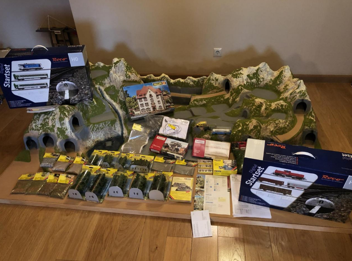 ...массивная под макетная основа для железной дороги Noch, 5 пакетиков Noch деревьев, Noch дорог, или тропинок, солонка на половину заполненная Noch насыпью и целое море разноцветных Noch людей, телеграфных столбов, плитки, листвы, заборов и ограждений...