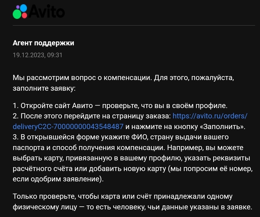 Дальше больше, агент поддержки предложил написать заявление на компенсацию. Тут я обрадовался, подумал, ну всё, проблему решат, а мне компенсируют материальный ущерб. Ага, размечтался дурачок, подумал, что поддержке не всё равно, сейчас мы его...