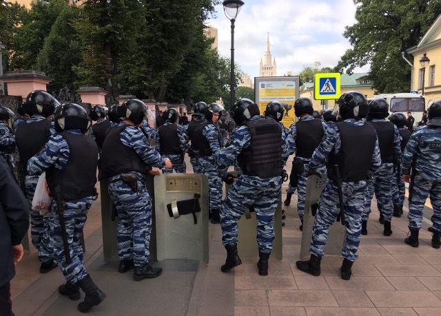 На месте — большое количество бойцов ОМОНа и сотрудников полиции. Район, где проходит акция, оцепила полиция.