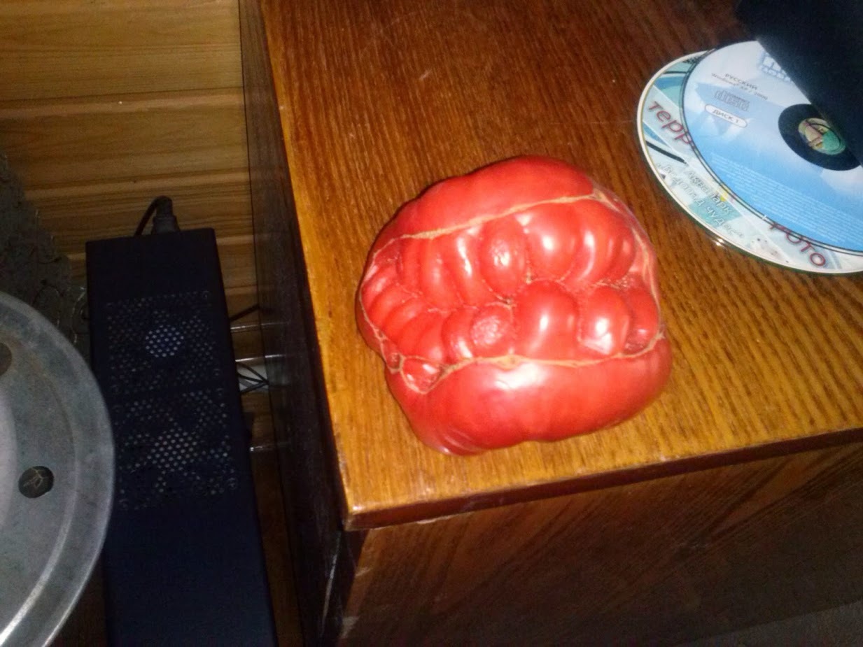 11 Fendr У родителей вырос вот такой весельчак. 8 лет назад К посту http://pikabu.ru/story/mr_perets_4973698Сорян, за качество, фотографировал на огурец. [моё] Овощи Помидоры Гламурное кисо Улыбка