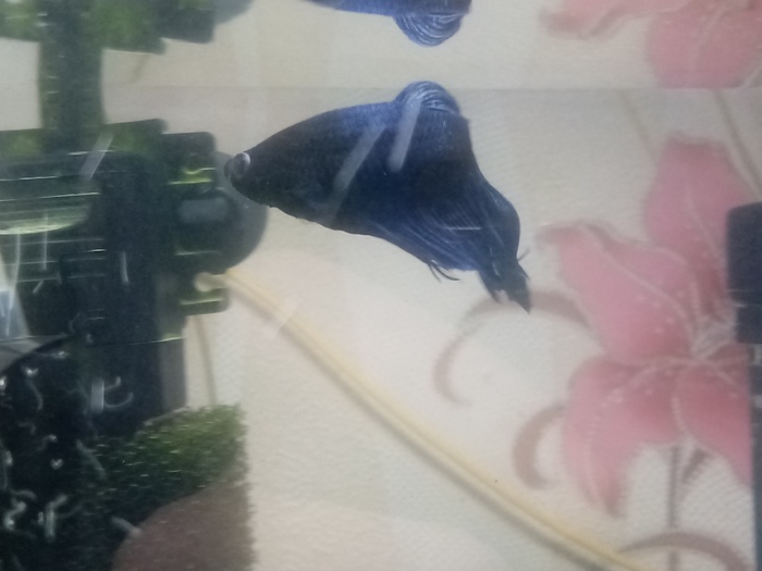 Позвонила маме она сказала купить марганцовку и разбавить с водой в банке ,я так и сделала петушка оставила в ней на 15 мин ,а потом обратно в аквариум...