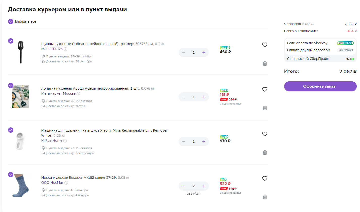 В прошлом никогда не покупал у них ничего (в будущем тоже теперь уже не планирую), но скидка ощутимая, решил воспользоваться. Накидал в корзину мелочей. То, что вроде бы и не срочно надо, но удобства в жизни поприбавило бы. Вот корзина: