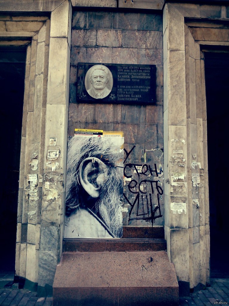 5 yumicake У стен есть уши 12 лет назад шла по улице,а там сие изображение P.S.: привет из Алматы) [моё] Стрит-арт Улица
