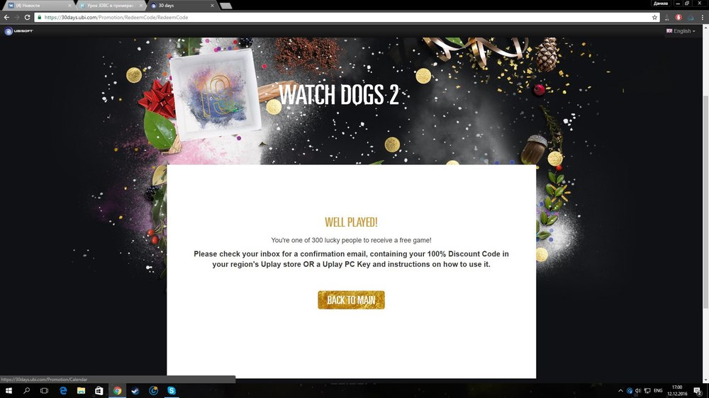 • 25 ноября. 30% скидка на игры Ubisoft в Uplay;