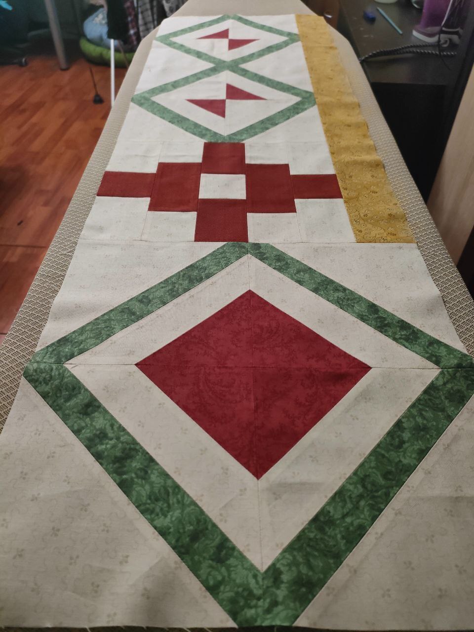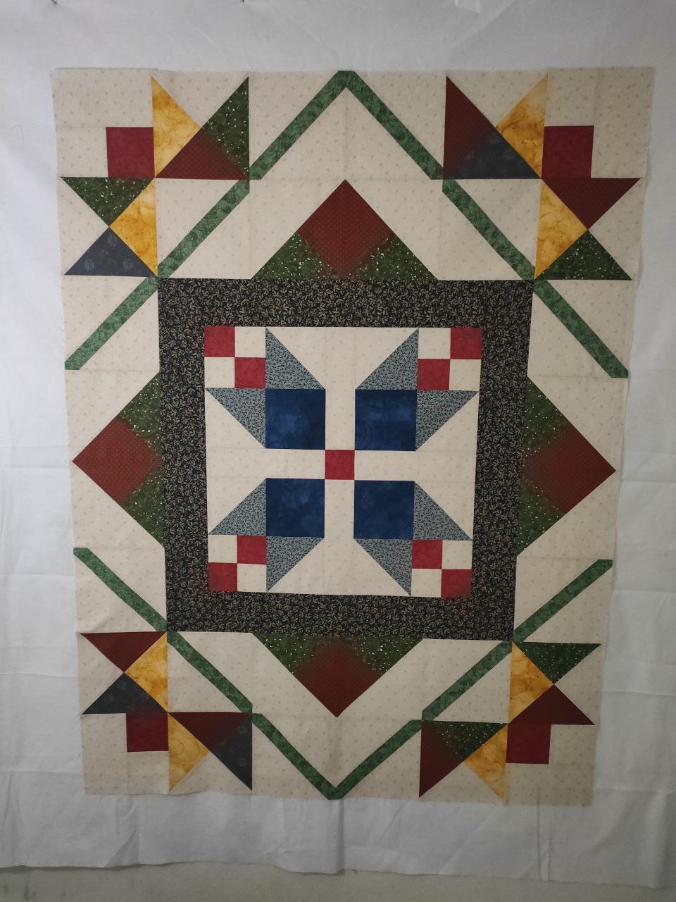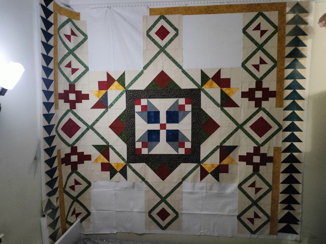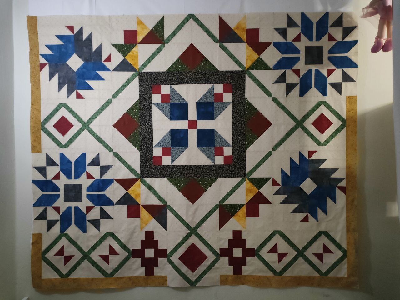 А потом самый волшебный этап - стежка. Это действительно магия в руках мастера (стегала не я, у меня такой большой машины нет пока и навык стежки небольшой, поэтому стежку заказывала (правилами фестиваля это допускалось)).