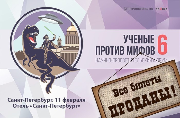 Друзья! Билеты на форум "Ученые против мифов-6" (СПб, 11 февраля) закончились. От слова "совсем".