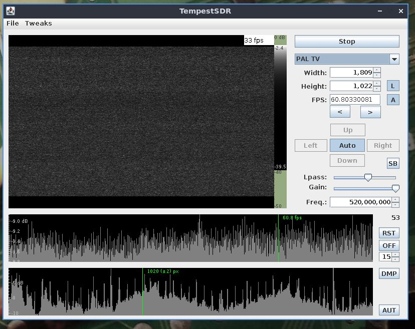Многие наверняка захотят попробовать RTL-SDR (в подавляющем большинстве случаев эту голубую затычку покупают как первый SDR, даже я сам был не исключением). На просторах даже есть руководство, как запустить TempestSDR вместе с этим китайским девайсом, кто-то даже рассказывал об успешном приёме, но я проверил — оно не работает. Всё дело в том, что дешёвый чип RTL2832U обладает кучей собственных шумов, отчего неспособен принять столь слабый сигнал, как побочное излучение от монитора, которое само по себе находится на уровне шума. Увы, для таких опытов необходим SDR получше (например, HackRF, SDRPlay).