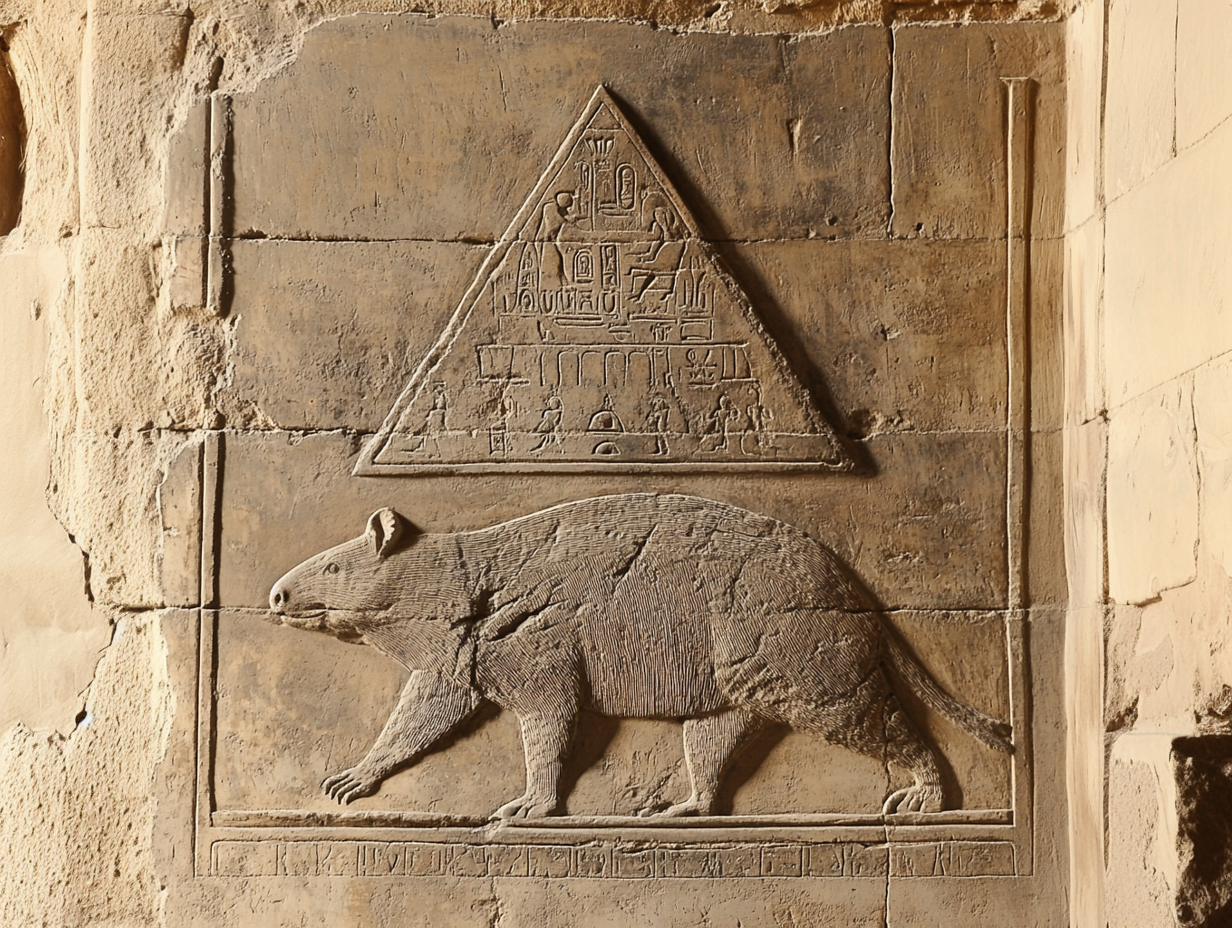 Археологи десятилетиями ломали голову: как египтяне таскали 2,5-тонные блоки без кранов? Ответ нашли на рельефе из гробницы в Луксоре, где изображено странное существо с когтями, как у экскаватора, и телом размером со слона (см. фото в заголовке). Расшифровка иероглифов шокировала: «Великий Уом-Баат, дарующий камни» — так египтяне называли гигантских вомбатов, которых считали земным воплощением бога созидания Птаха.