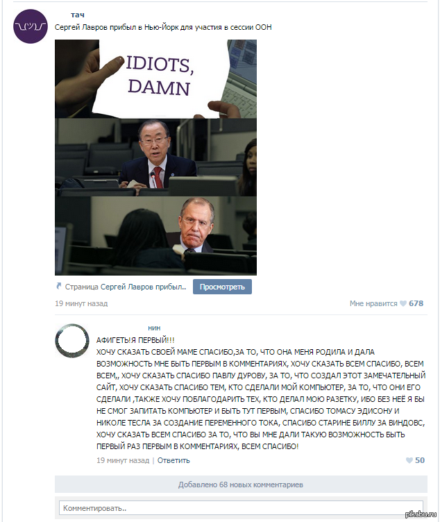 Удача: первый коммент