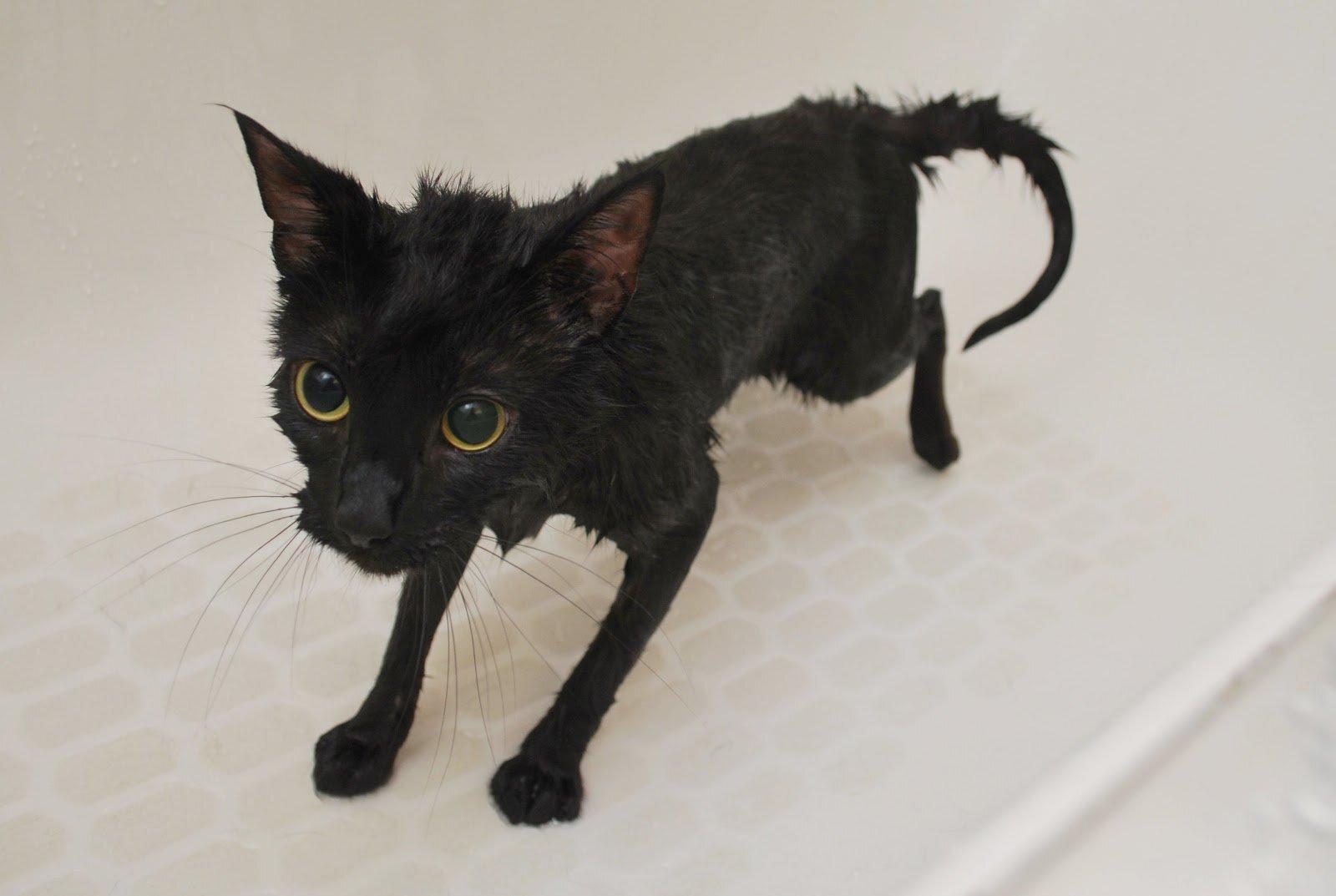 Вот так примерно выглядела кошка, только очень сильно напуганная и едва держащаяся на ногах.