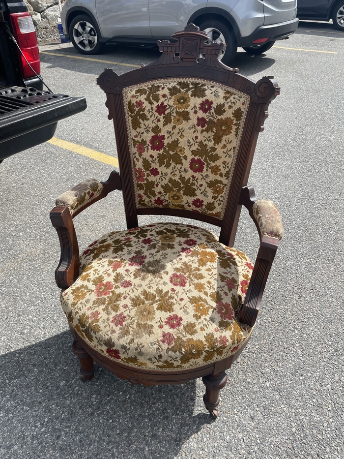 Но это не все. Неподалеку от дивана оказался вот такой красивый резной стул/полукресло. Правда требует небольшого ремонта(кое где рассохся)