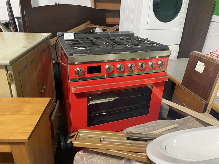 Красивая красная плита smeg. Вроде новая такая стоит около трех тыщ, а тут за одну