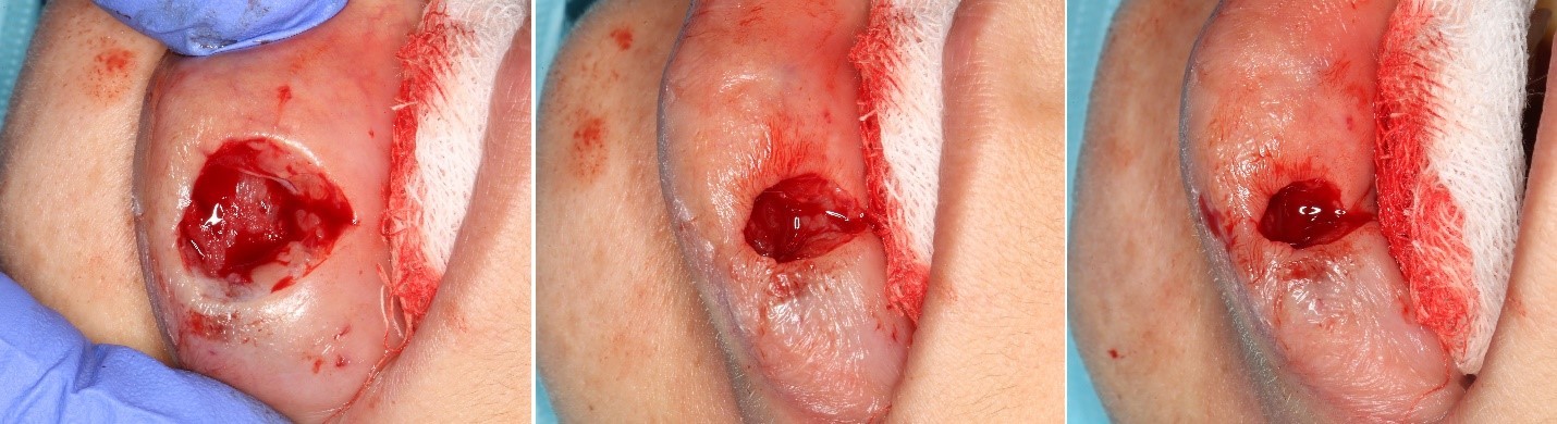 При помощи скальпеля проводится два окаймляющих кисту разреза: