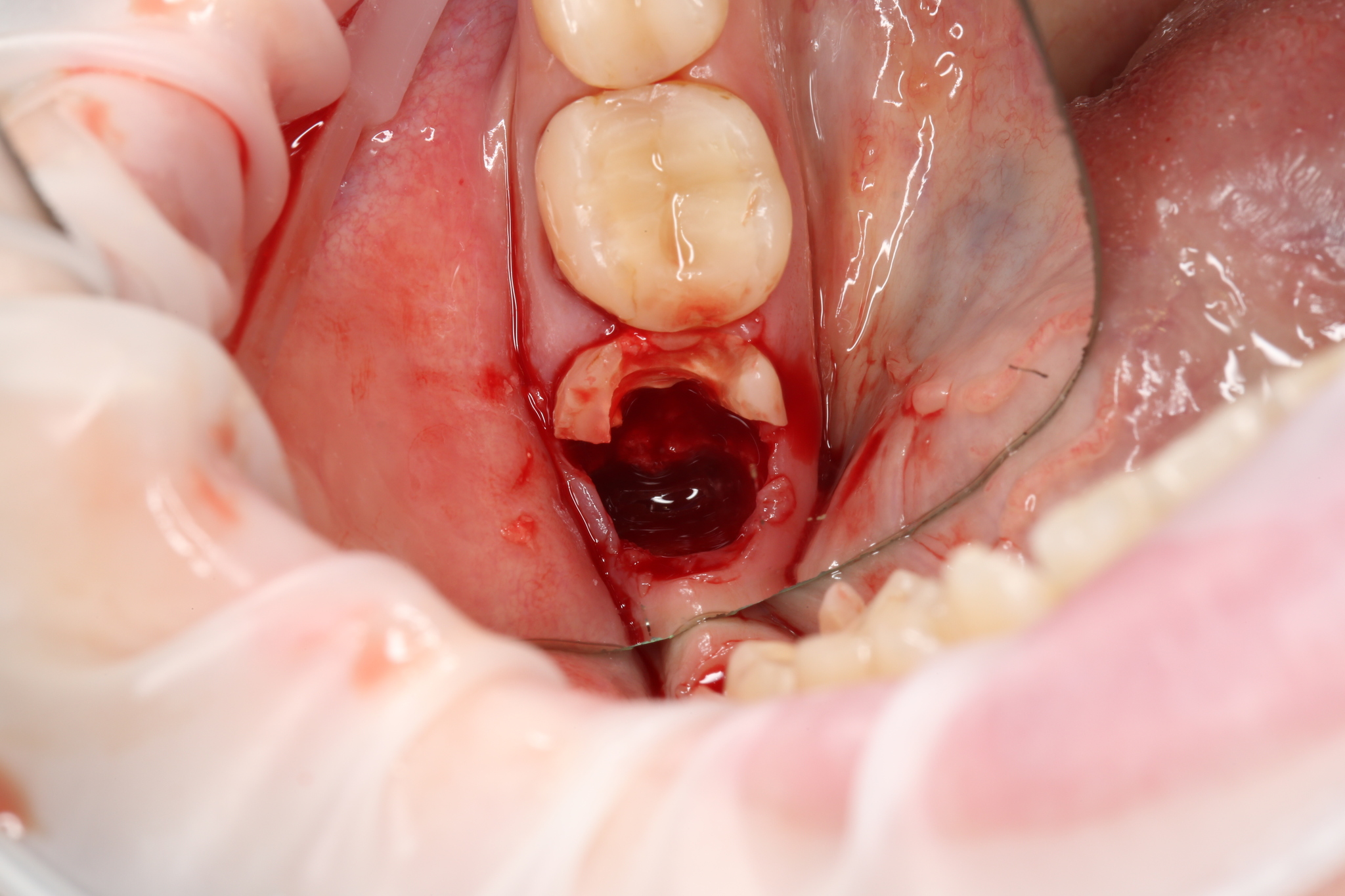 На осмотре лунка выглядела таким образом (швы сняли):