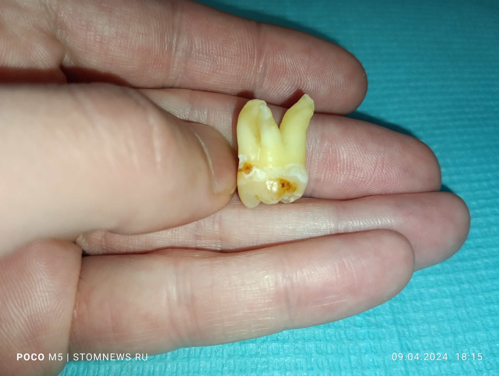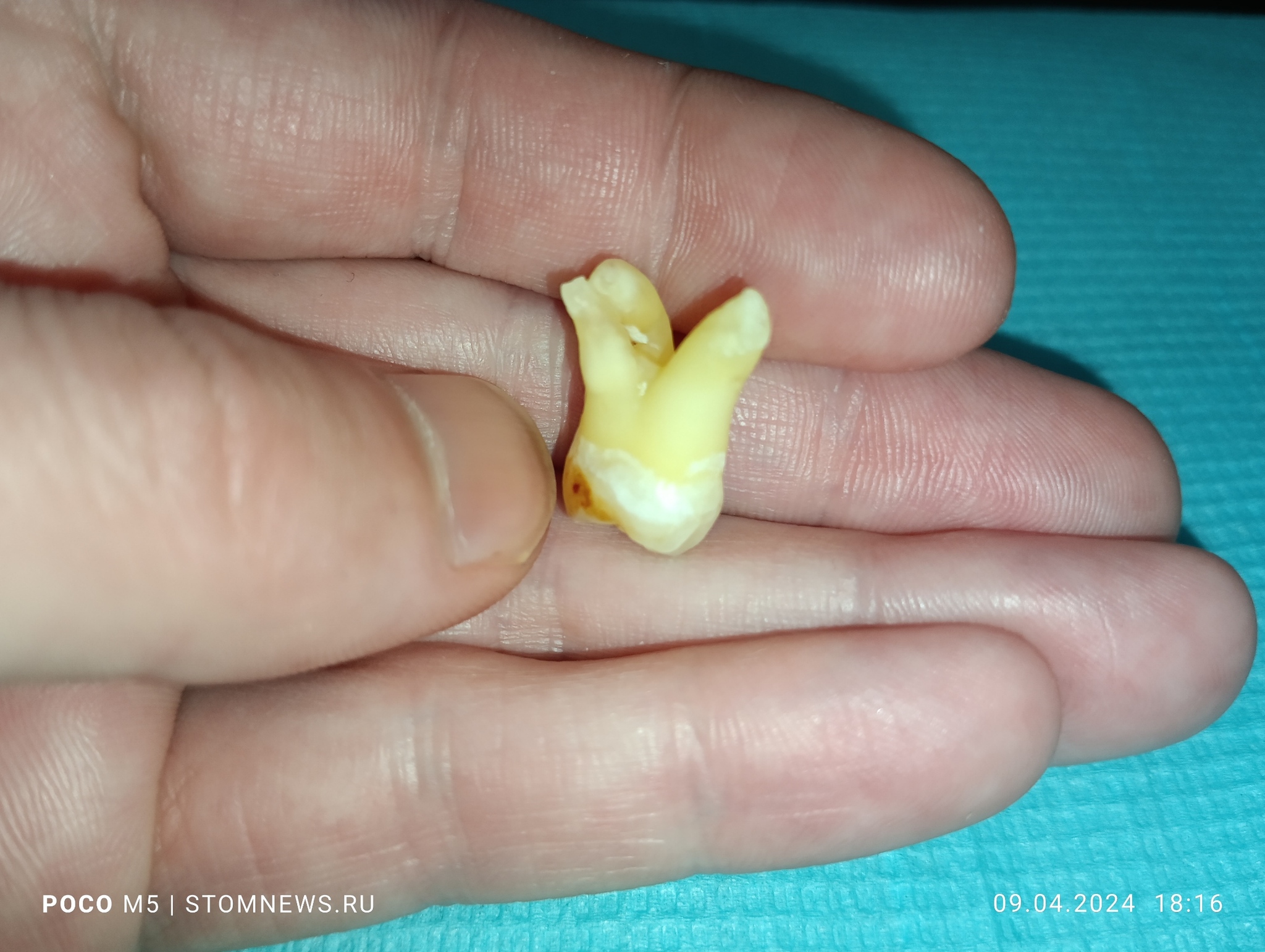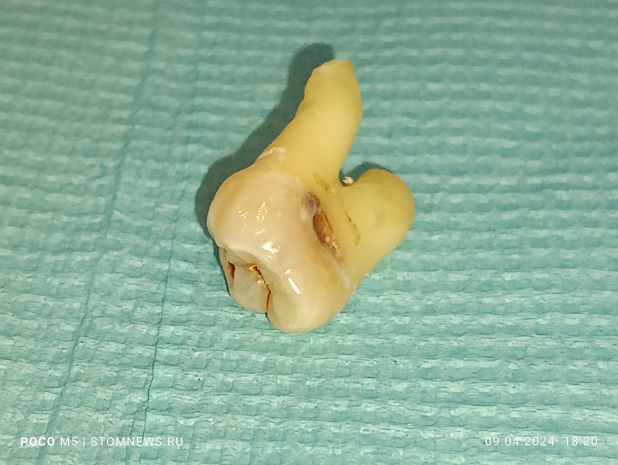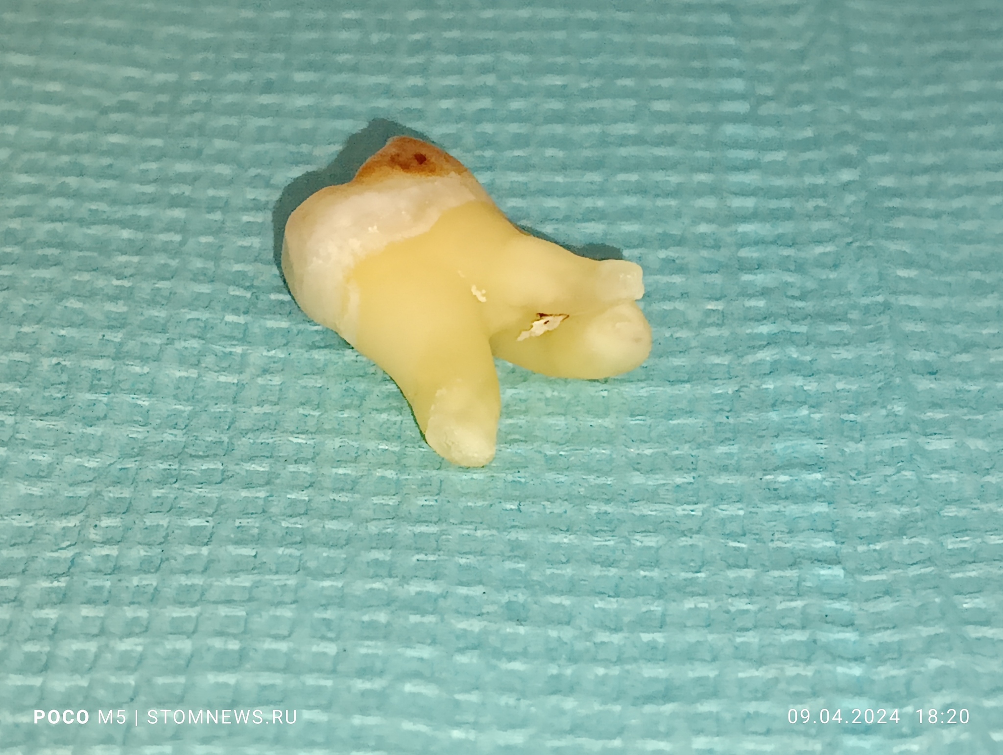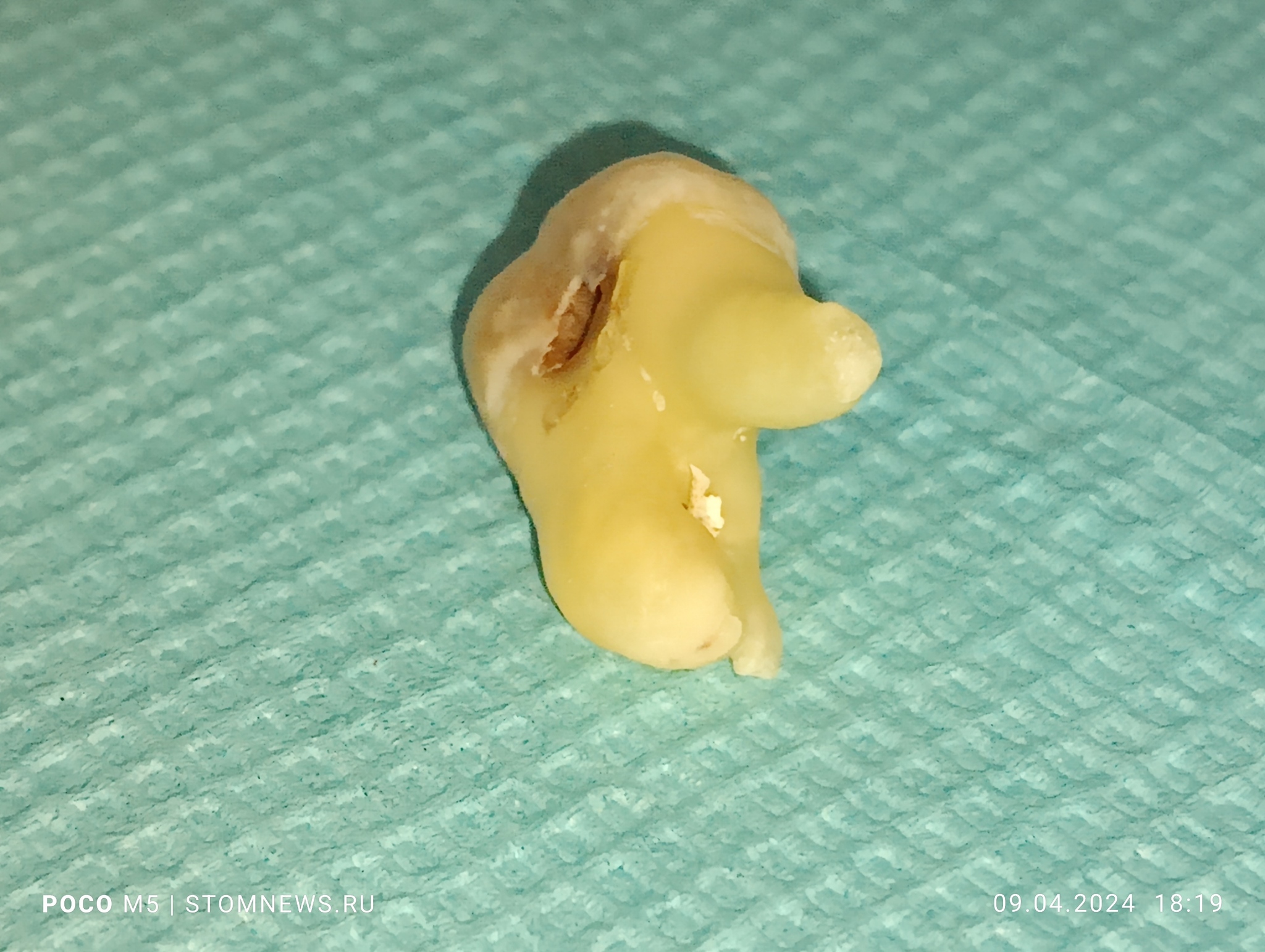 Источник изображений, мой личный сайт: Удаленный 28 зуб мудрости с корнями по типу «оленьи рога»