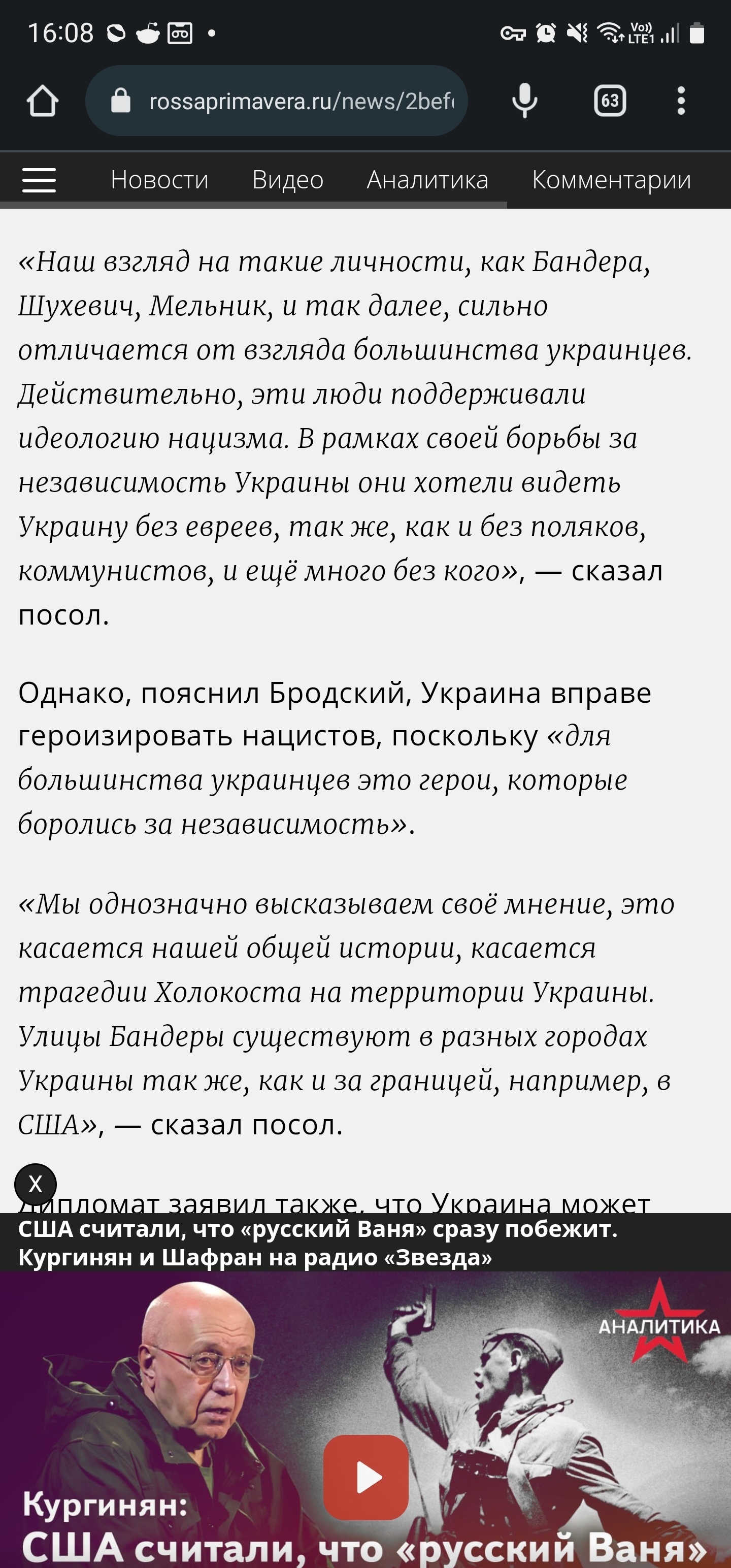 Израильский посол на Украине Бродский великолепно сформулировал: “Бандера и Шухевич, конечно, поддерживали идеологию нацизма, хотели Украину без поляков, евреев и еще много кого, и нам (евреям) эти люди не близки. НО. Украинцам нужны герои, а эти люди боролись за независимость Украины”. Ну и вообще в честь Бандеры в США улицы называются.