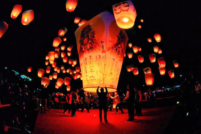 Небесные фонарики также имеют не только историческое значение. Согласно древнему обычаю, чем дольше небесный фонарик будет находиться в воздухе, тем больше удачи будет у того, кто его запустит.