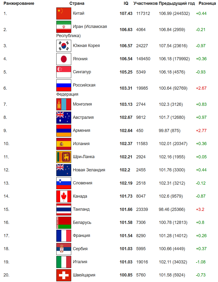 США к примеру даже не в двадцатке, хотя "мозгов" туда перетекает море. Ну и количество тестируемых местами смешное (и собирается только из тех, кто прошел тест на сайте), так что эта статистика, скорее просто показатель посещаемости этого сайта и использования их тестов.