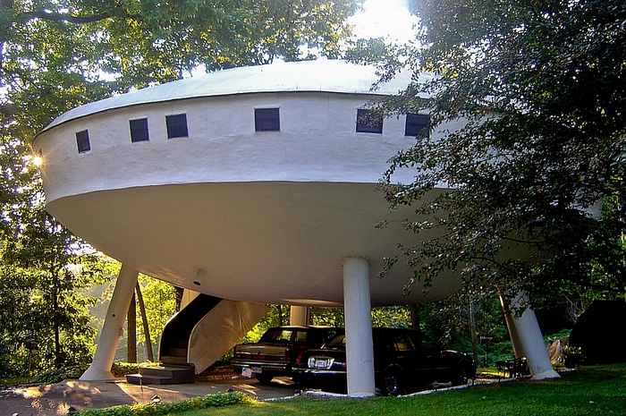 Бетонный Spaceship House (Космический корабль) в лесу штата Теннесси, США
