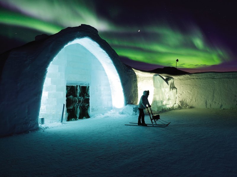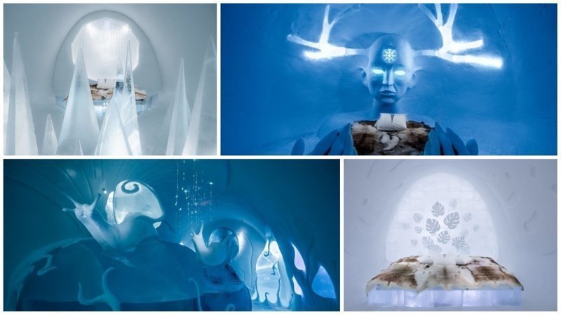 В Швеции, в небольшой деревушке Юккасъярви за Полярным кругом, расположена местная достопримечательность - ледяной отель. Он существует с 1989 года, и каждую зиму сюда приезжают лучшие скульпторы, чтобы создать из снега и льда потрясающие комнаты для отеля. В этом году там были построены 35 номеров, и каждый уникален.