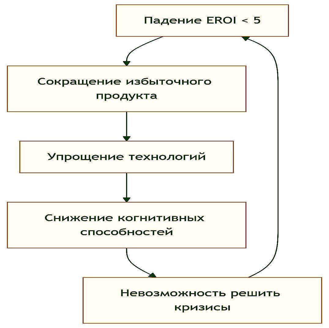 Как предупреждал энергетик Чарльз Холл: «EROI — это не просто число. Это мера способности цивилизации поддерживать сложность. Когда оно падает ниже 5, мы возвращаемся в XVIII век, но без его когнитивного потенциала». Ключевой тезис: Снижение когнитивных способностей ускоряет падение EROI, создавая петлю положительной обратной связи.