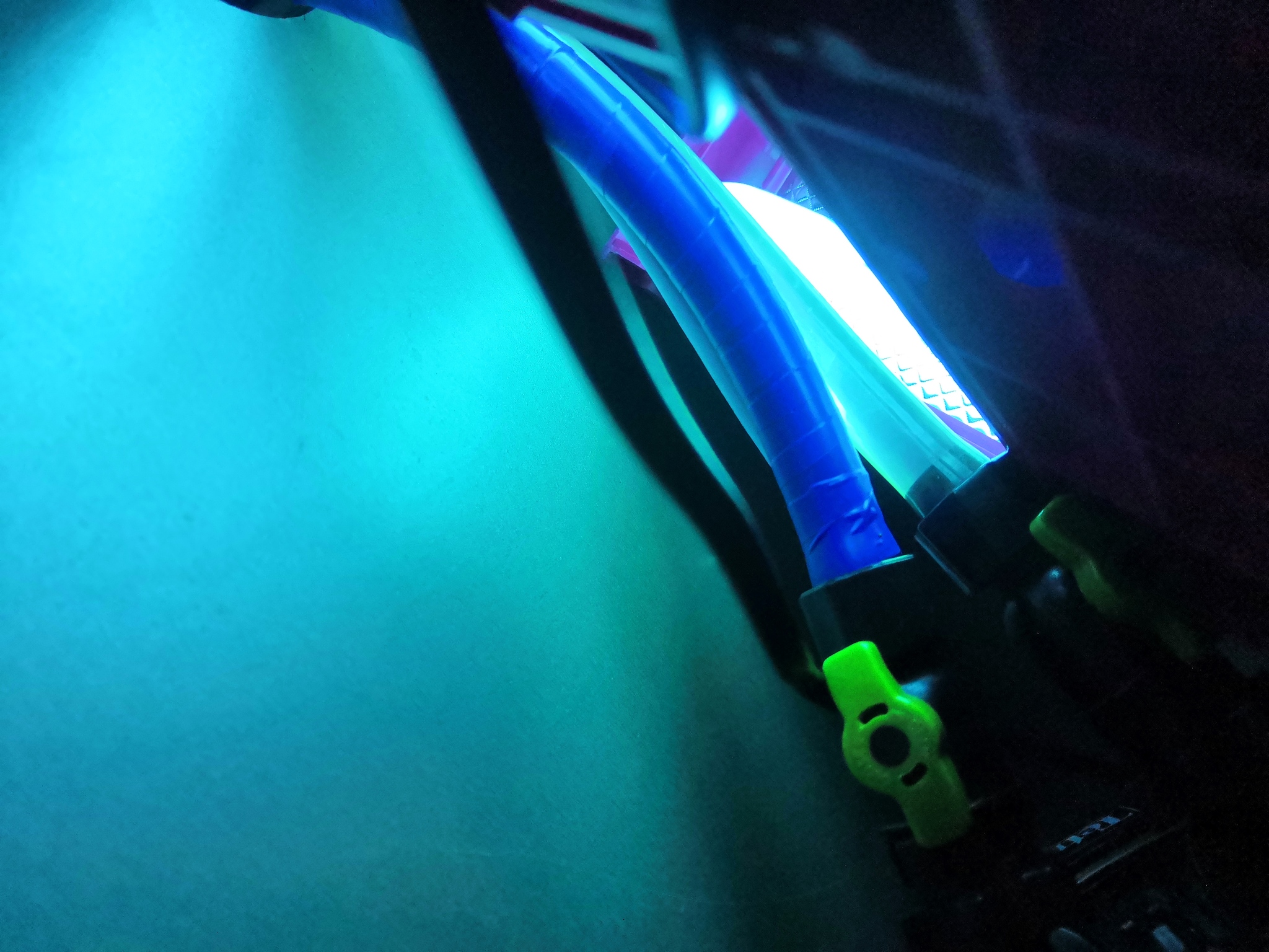 Подумано-сделано. Залепил изолентой входной шланг (естественно синей, другие не справятся) Взял у жены уф-сушилку для ногтей. В ней было 3 лампы по 9 ватт.