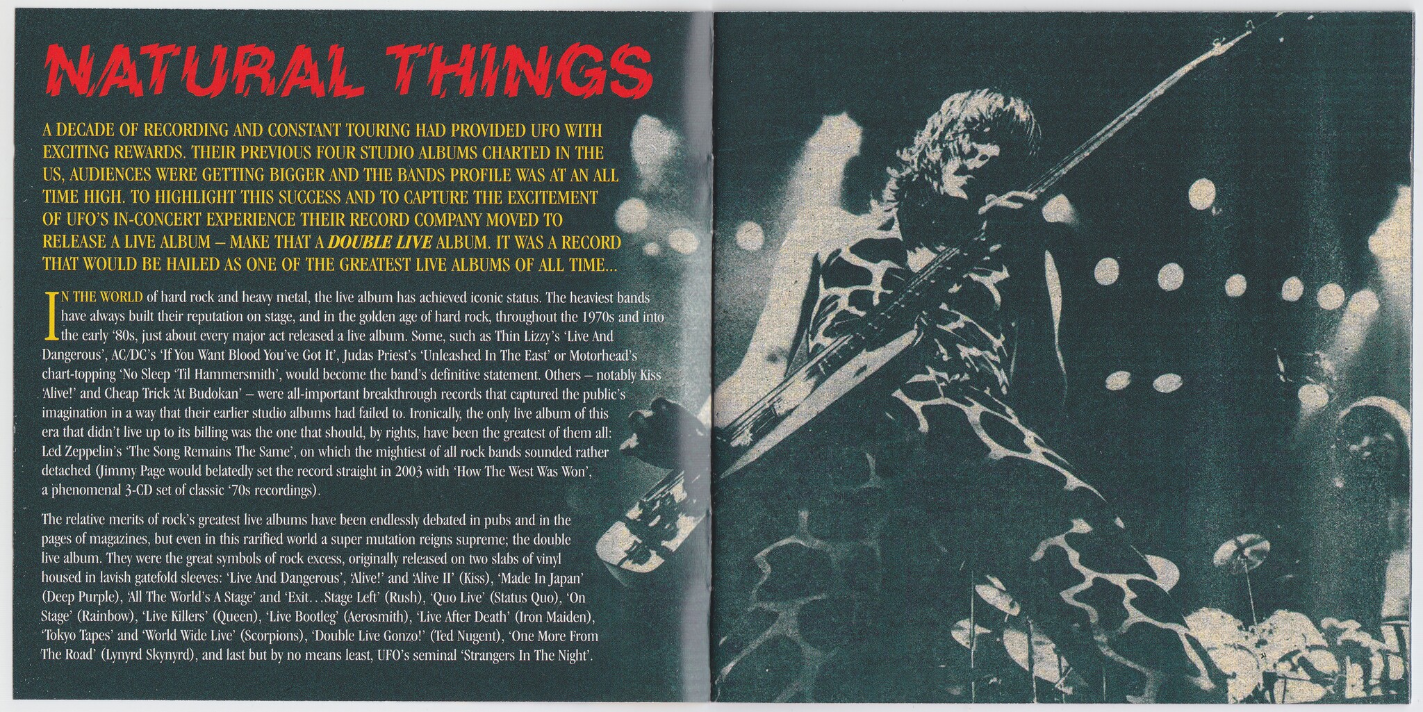Еще один великолепный концертник 70x группы UFO. Это одна из самых тяжелых групп 70x. Но про нее не шибко часто вспоминают вспоминают. Как и про группу волнистый попугайчик. Обычно вспоминают саббат, пристов, перплов, ну Назарет может, Цепелинов. Хотя влияние на ту же Новая волну британского хеви-метала она имела. Iron Maiden кстати делали кавер на пестню Doctor Doctor. А начинали они как спейс-рок группа. Первые два альбома записанны у них в это жанре. И название взято под жанр. Но потом на третьем альбом 1974 года они решили рубить хард. Незнаю по чему. Может глядя на своих коллег и видя утяжеляние рок музыки. Это как группа Sweet. Тоже в 1974 ударились в хардюшник. Хотя продюсеры изначально их заставляли записывать слащавые мягенькие песенки. А чуваки хотели хард рубить. Scorpions в 1975 перешли от психоденлики и прогрессива к харду и хеви. В группе играл гитарист Михаэль Шенкер и это последняя записть с ним перед его уходом. Альбом записан в записан в ходе гастроле UFO по США осенью 1978 года.