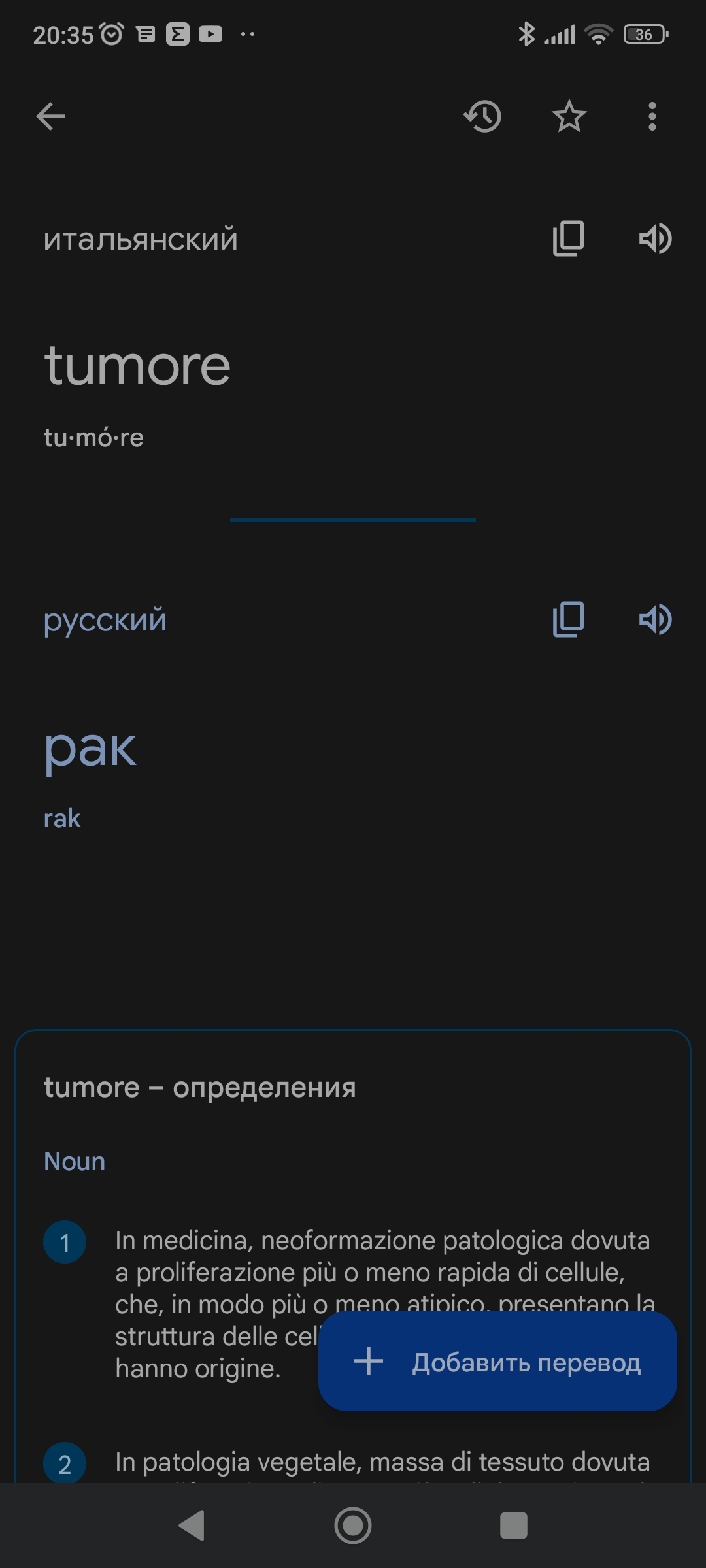 Да я просто спросила про cancro. Tumore как-то не замечала. Наверное просто пропускала мимо ушей, потому что незнакомое слово. Я не особо хорошо говорю. Достигла уровня, которого хватает, да и достаточно. Новое узнаю вот так, как сейчас, в процессе общения.
