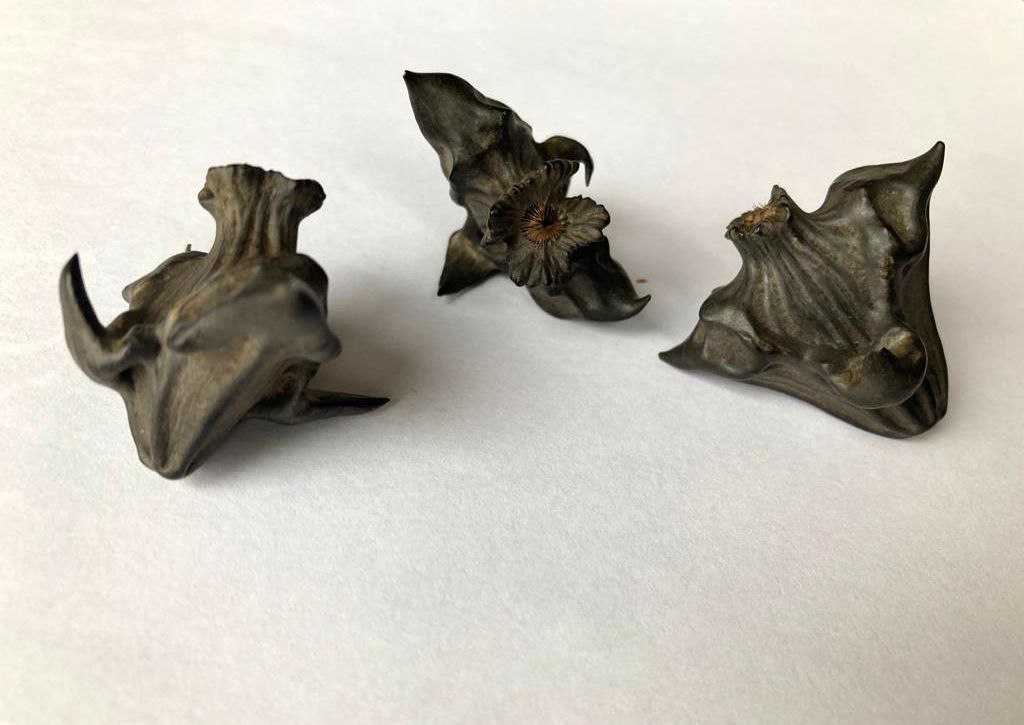 Ответ: Водяной орех или рогульник, также чёртов орех. Как понимаете, названия рогульник и чёртов орех растение получила за форму своих плодов.