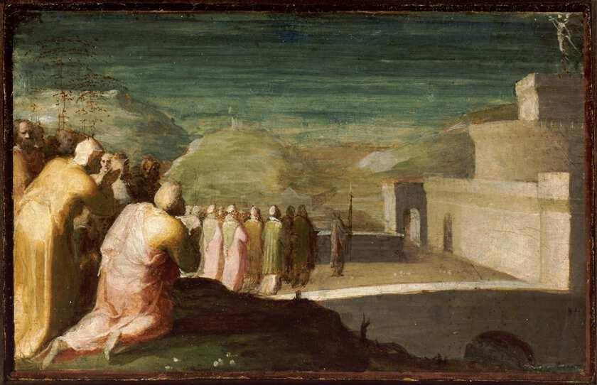 9. Это картина итальянского художника XVI века Доменико Беккафуми. На ней изображена покаянная процессия, идущая по опустошенным эпидемией улице.