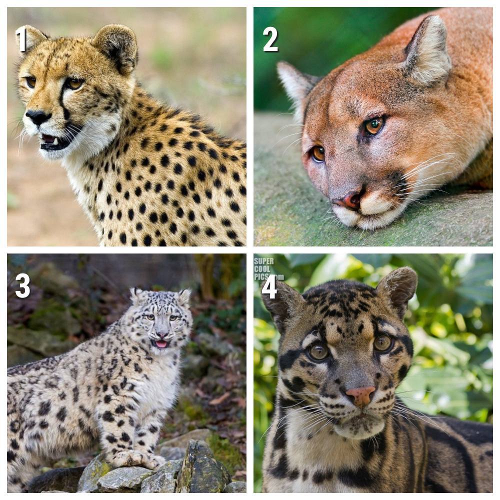 1. Гепарда. 2. Пуму. 3. Ирбиса. 4. Дымчатого леопарда.
