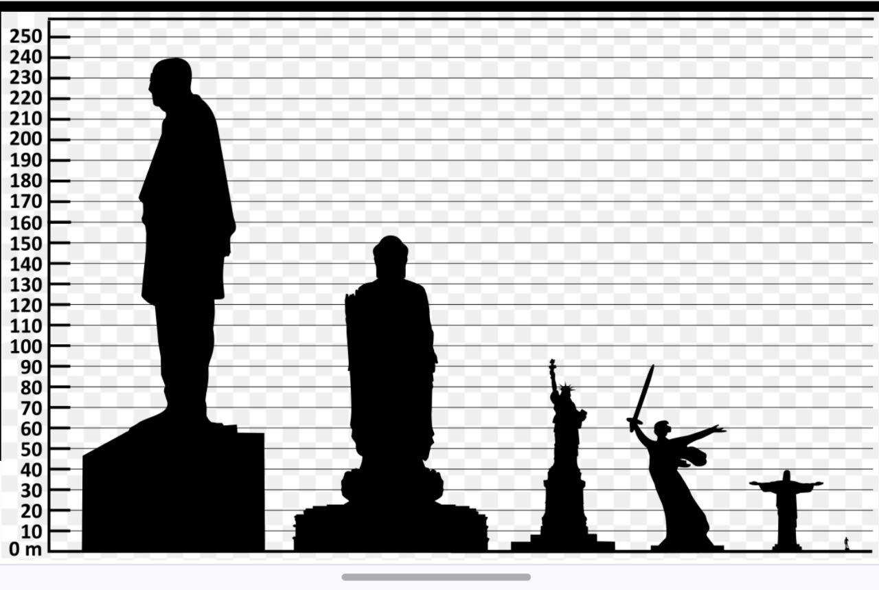 Ответ: Статуя Единства (хинди स्टैच्यू ऑफ यूनिटी) (англ. Statue of Unity) — памятник в Индии в виде статуи в честь Валлабхаи Пателя, заместителя премьер-министра Индии и одного из лидеров движения за независимость Индии, на острове Садху на реке Нармада в штате Гуджарат. Статуя является самой большой в мире: её высота вместе с постаментом составляет 240 метров, причём 182 метра приходится на собственно человеческую фигуру.