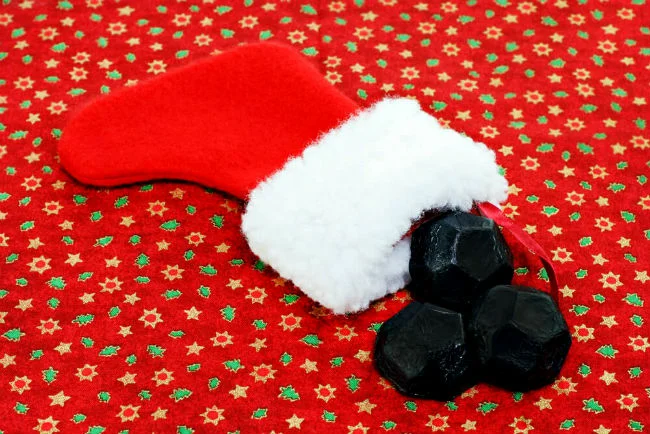Как известно, непослушным детям Санта-Клаус вместо игрушки или сладостей оставляет в чулке кусочек угля. Если предположить, что подарка не заслужил каждый пятый ребенок, Санте придется раздать примерно 75 000 тонн угля. А это 37 111 тонн метана, выброшенного в атмосферу при добыче ископаемого. Еще 194 591 тонн попадут в воздух, если рождественским утром этот уголек будет сожжен. А так обычно и поступают.