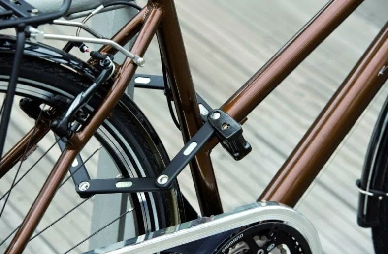 Такой противоугонный велосипедный замок являет собой складную конструкцию из закаленных пластин толщиной от 5 мм.