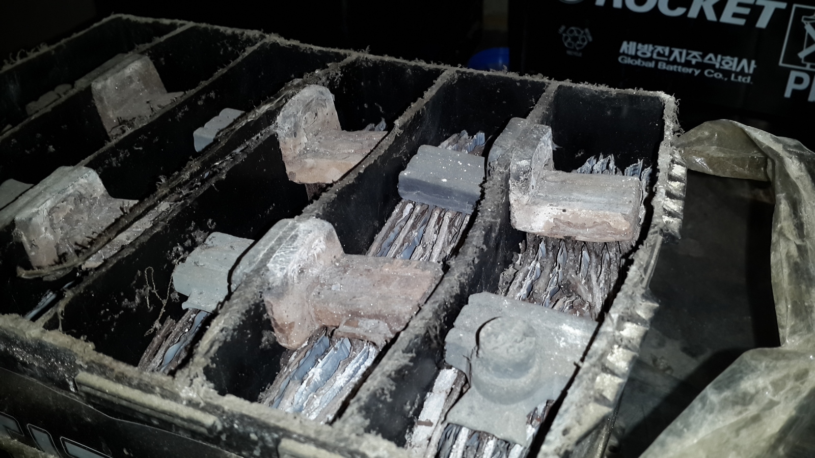 Внутренности АКБ после очень длительного хранения в полностью разряженном состоянии: