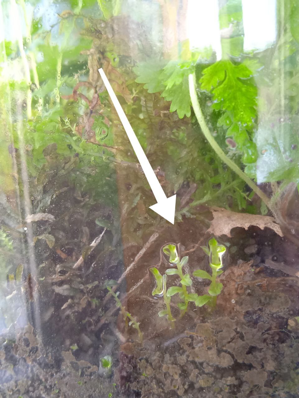Если сравнивать с моей первой бутылкой, то этот эксперимент обещает быть интереснее. В моей первой экосистеме, которую я сделала два года назад, в первый месяц погибло большинство посаженных растений, а дальше соревновались между собой 3-4 оставшихся вида.