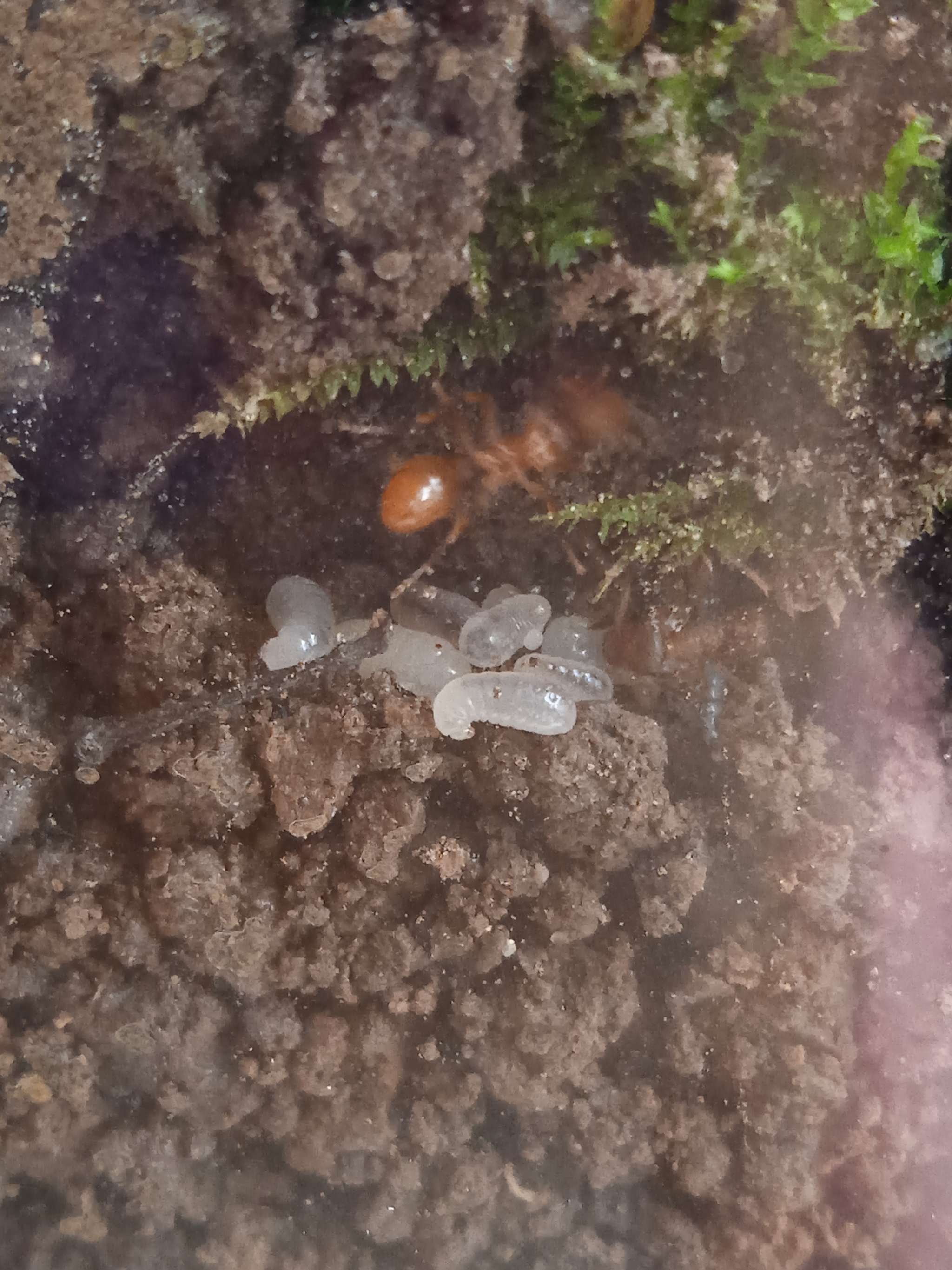 Муравьи - попался целый кусок муравьиной колонии с яйцами и личинками