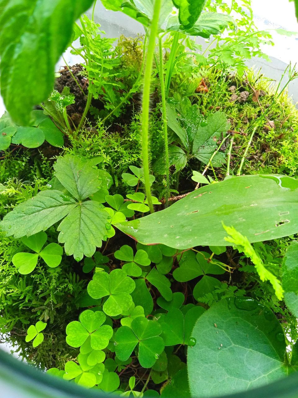 Самое сложное растение в плане переноса из леса. Все три ростка засохли буквально через 10 минут после выкапывания. Так же было и в прошлом году, когда я первый раз пробовала делать эту банку. Но, в отличие от прошлого года, в этот раз у хвоща выросли два молодых побега. Так что есть надежда, что хвощ приживется.