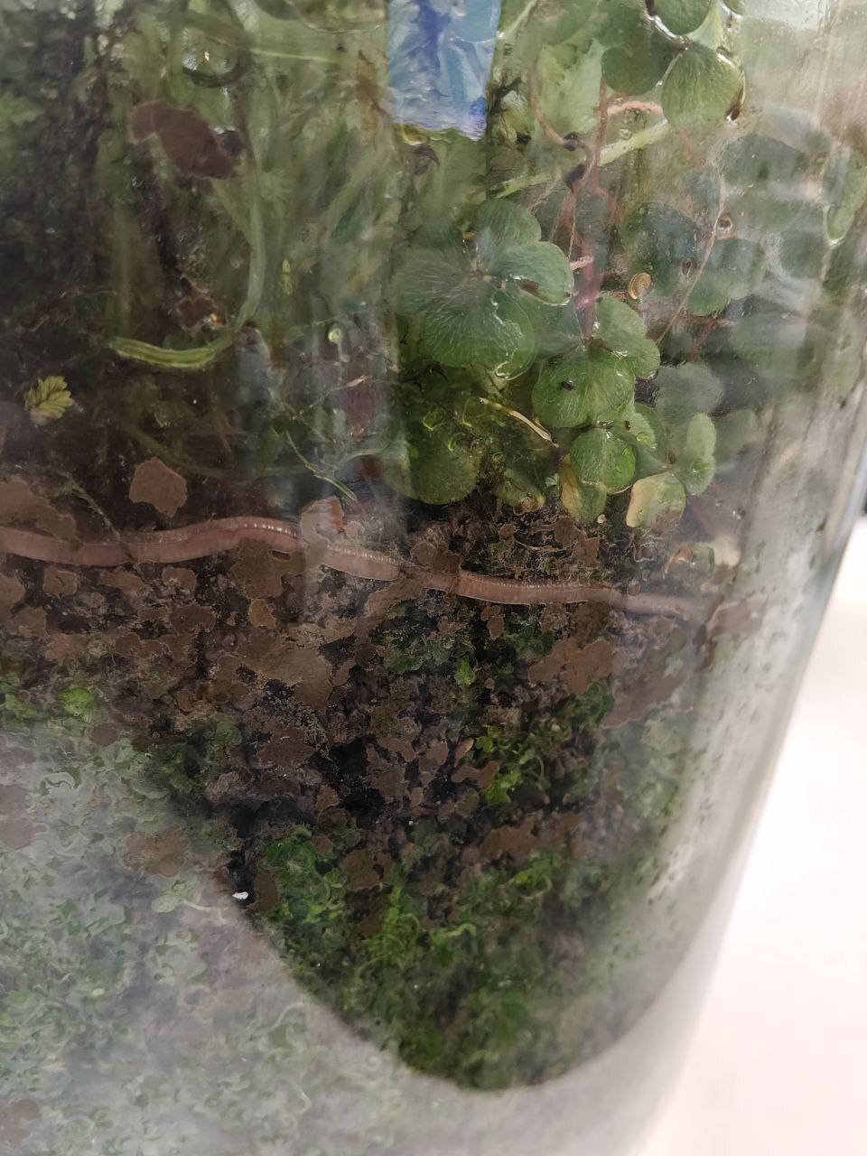 Вкратце, в банку вместе с почвой из леса попали мокрицы, дождевые черви, ногохвостки, кивсяки, геофилы, маленькие улитки и слизни. Все хорошо себя чувствуют, периодически вижу весь этот зоопарк) Фото - в посте по ссылке выше.