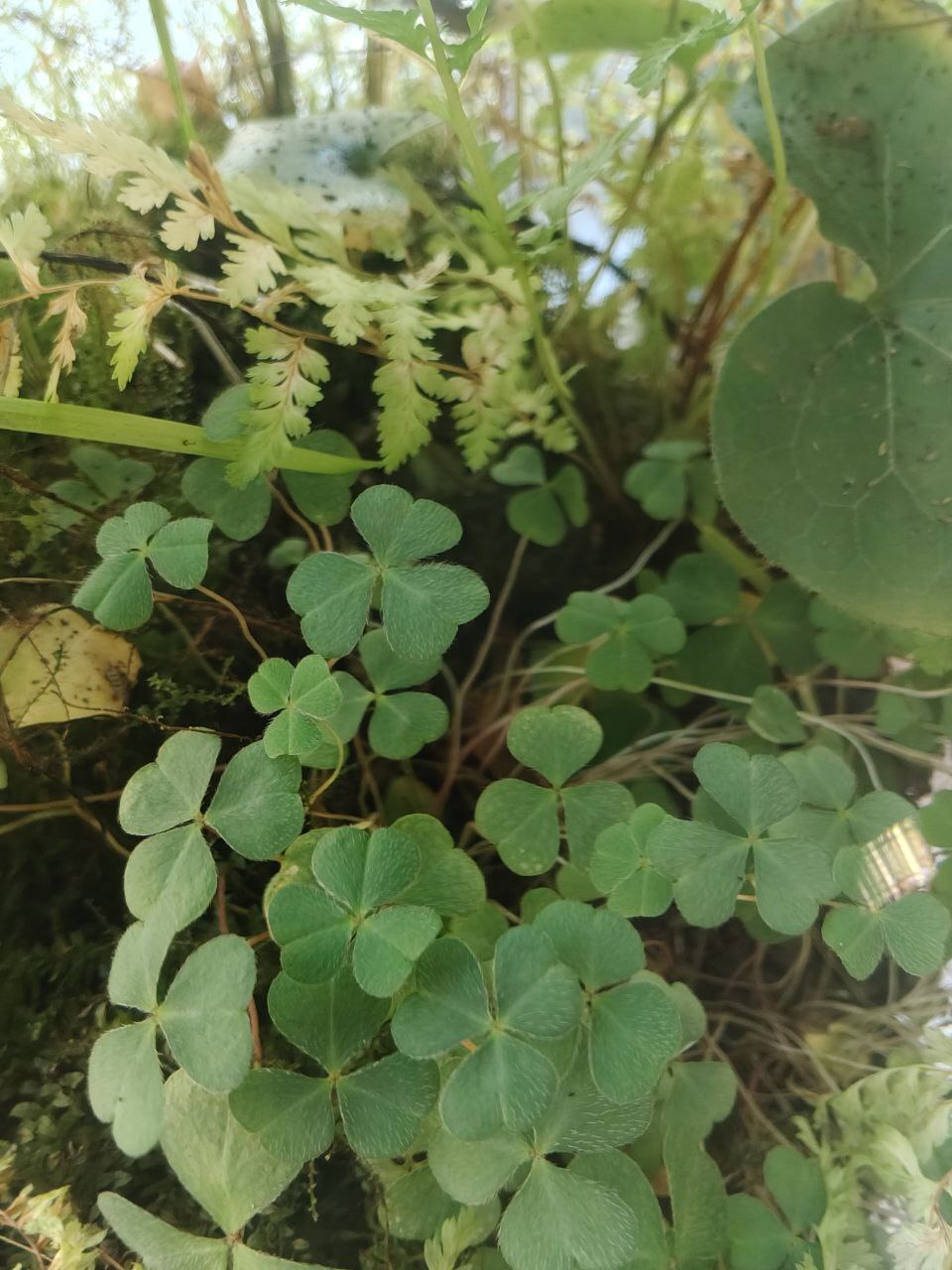 2. Кислица. Её рост остановился, но не погибает. Листья в основном зеленые. К слову, в моей первой бутылке кислица погибла в ноябре, а тут ничего, растёт. Надеюсь, до весны доживет.