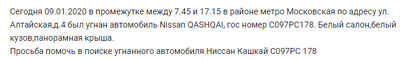 Надеюсь приметы будешь сообщать уже готовым добровольцам, а не сразу все как на духу тут выложишь, угонщики вполне себе могут быть и пикабушниками)) (кэп).
