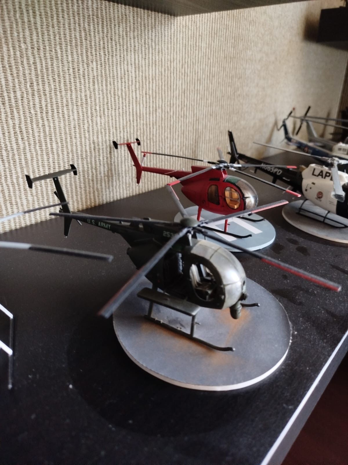 Так вот. Однажды в комментах @EA18 сказал мне: "Никогда не выставляйте модели без подставки". А я терпеть ненавижу диорамы, мне кажется, они душат модель. Без них модель сама в себе, может быть чем угодно, можно её выставить как угодно. Можно, в конце концов, взять её в руки и под радостный «вжух-вжух-врррр» поиграть ею, как будто тебе пять лет. Когда она на диораме — она в статике, она замёрзла, она застыла в кубе композиции, как стоп-кадр. А подставка — суть та же виньетка и диорама. Но! Но эффект полковника Васильева сыграл свою роль, я собрал вертолёт и месяц не мог про него написать пост, ибо мне приспичило сделать под него виньетку. Не потому, что комрад EA18 так сказал, а потому, что свербит теперь. И я таки сделал, с прицелом, что остальные два вертолёта будут фоткаться на ней же. Вдохновился моментом из того же Мейсона, когда он прилетел в составе большой эскадрильи на какую-то базу, где было очень много красной пыли.