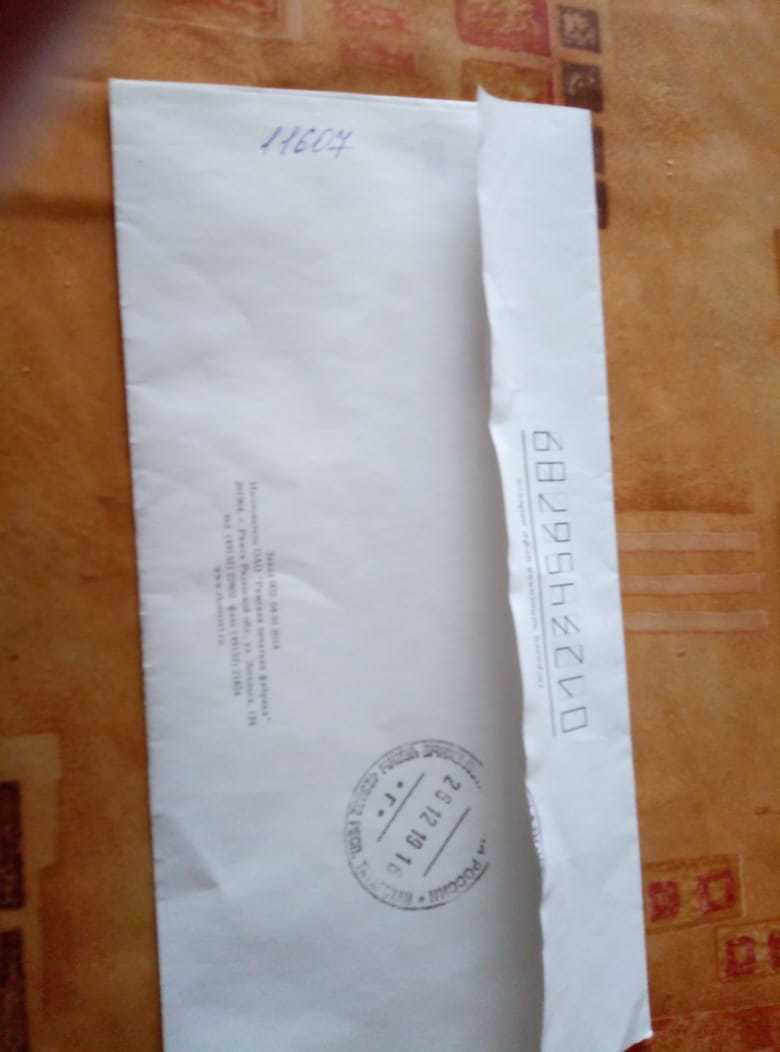 Обратите внимание на дату на штемпеле. 26.12.19. Забрала мама с почты только 30.12.19. Раньше не могла, работала. Прочитала после праздников. Позвонила и рассказала только сегодня. Теперь само письмо. В письме требуют либо предъявить документы на самодельный козырек, либо демонтировать его.