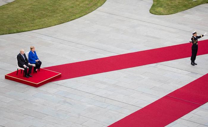 Канцлер Германии Ангела Меркель и премьер-министр Великобритании Борис Джонсон. Берлин, 21 августа 2019 года. Автобус ждут?